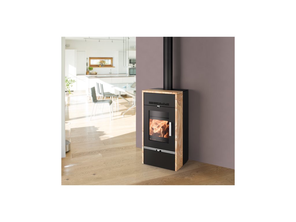 Krbová kamna s výkonným výměníkem a pískovcovým obkladem, HAAS+SOHN, FARUM