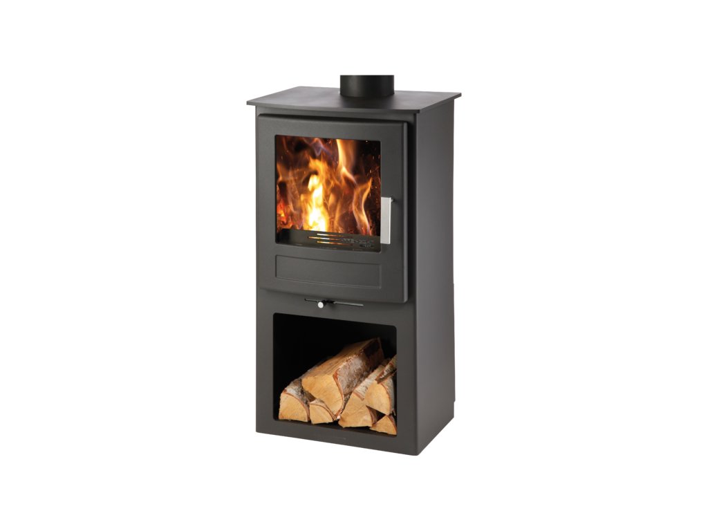 Černá krbová kamna ve skandinávském stylu s prostorem na dřevo, HAAS+SOHN, LEVANGER
