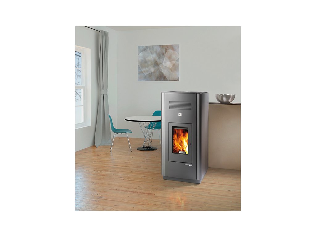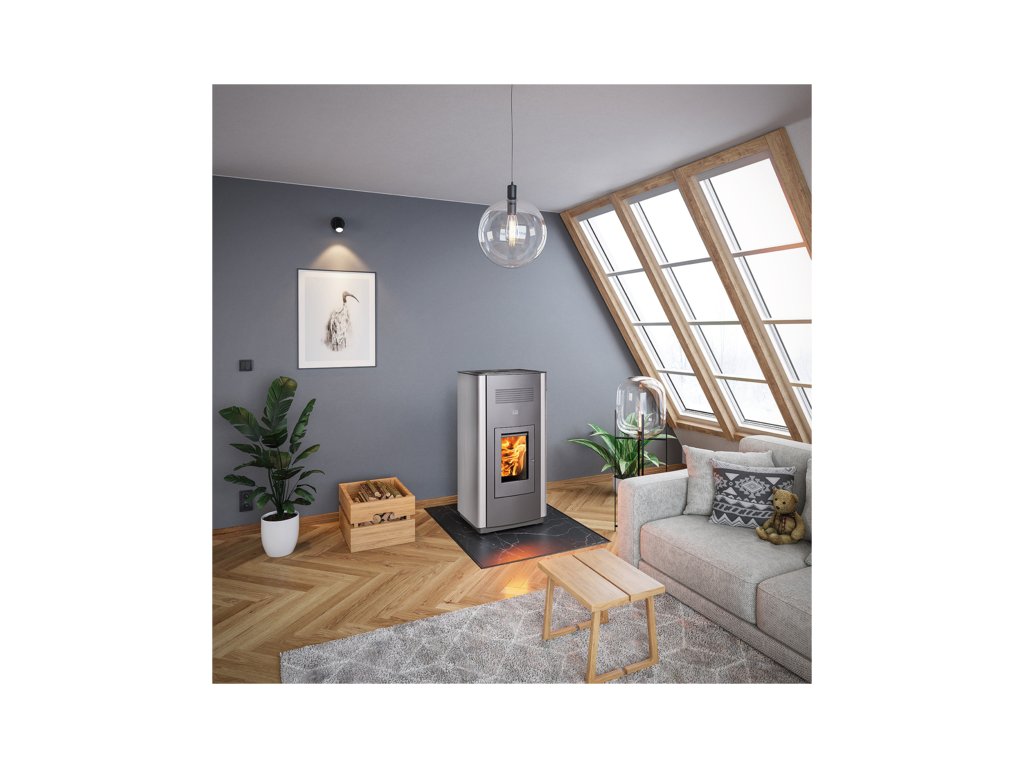 Peletová kamna v barvě antracit a šedá s velkým prosklením dvířek, HAAS+SOHN, HSP TOLEDO IV 32