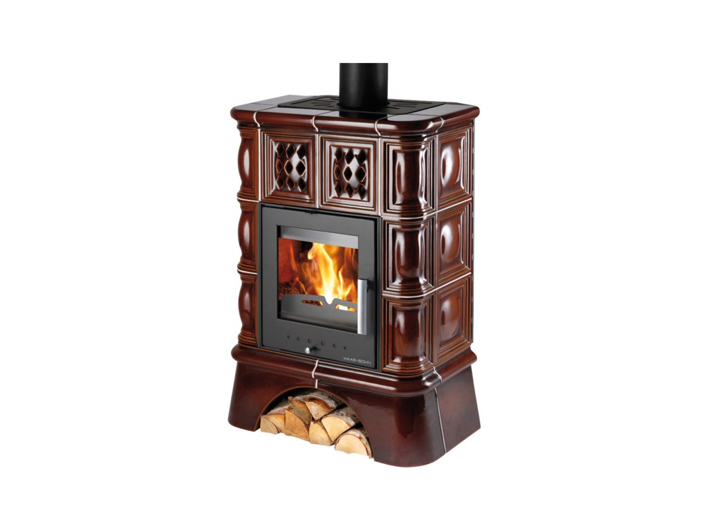 Hnědá kachlová kamna s výměníkem a kachlovým soklem, HAAS+SOHN, TREVISO II