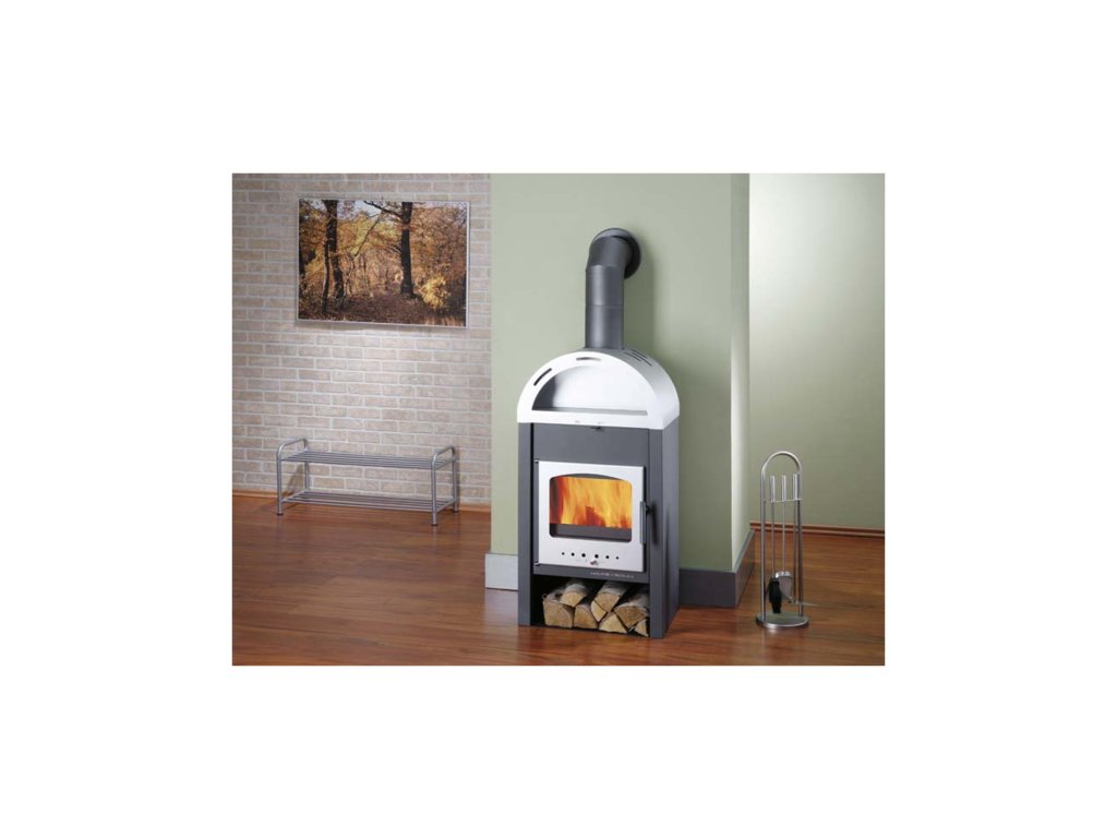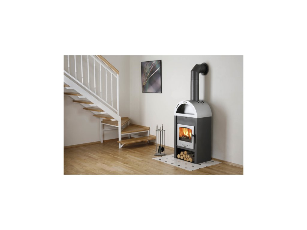 Levná šedá krbová kamna se stříbrnými dvířky, HAAS+SOHN, VAASA plus III