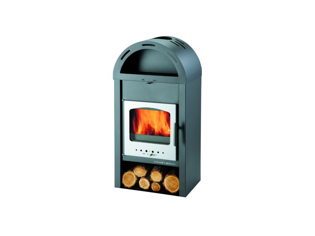 Levná šedá krbová kamna se stříbrnými doplňky, HAAS+SOHN, VAASA plus III